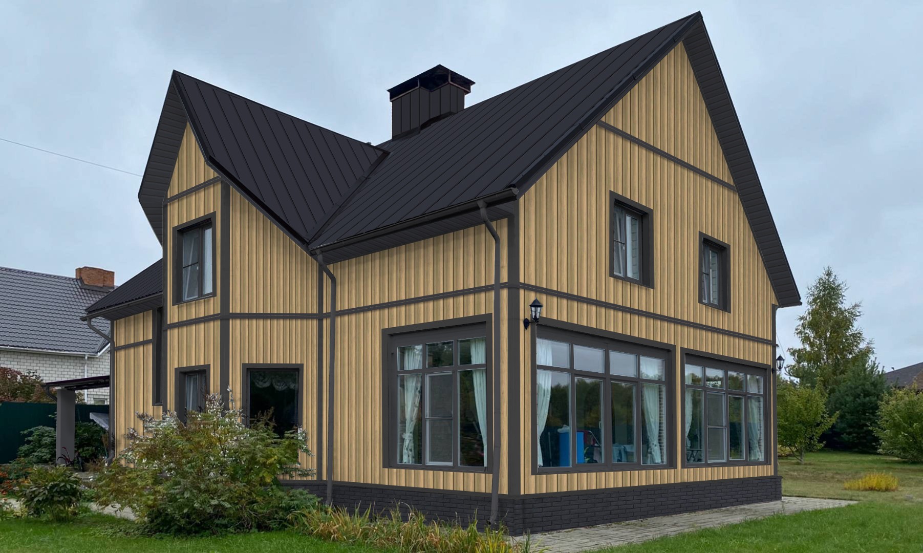 Cайдинг S6,3(Вертикальный) — вертикальные облицовочные панели, предназначенные для отделки фасадов частных жилых объектов, имитирующий отделку натуральным деревом. Зачастую, вертикальный сайдинг используют для придания акцентов отдельным частям строения (эркерам, мансардным этажам ит.п.). Сочетание винилового вертикального сайдинга сгоризонтальным сайдингом обеспечивают дому оригинальный иэстетически привлекательный внешний вид.
